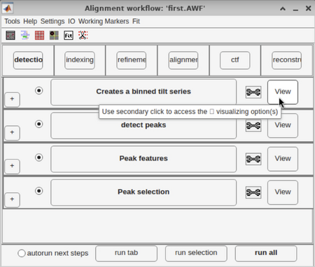 For some walkthroughs, like "Walkthrough on GUI based tilt series alignment", you need to do secondary click on the "View" botton:
