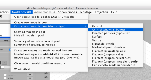An alternative way to quickly annotate the gold beads is by concurrent projection. In this approach we launch a projection view of the full tomogram [Project > project full shown fragment alongz z].